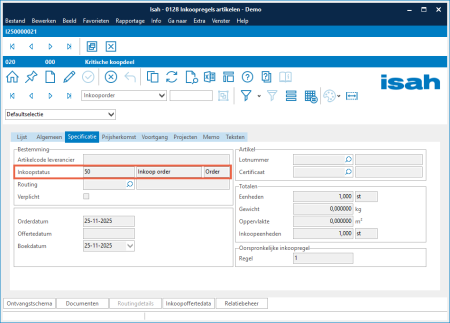 There is no automatic status handling for the purchase status. In other words, in none of Isah’s standard processes can you indicate that the status of a purchase line should be increased. Changing it to History is therefore a deliberate action, often performed to maintain a clear overview of ongoing purchases.